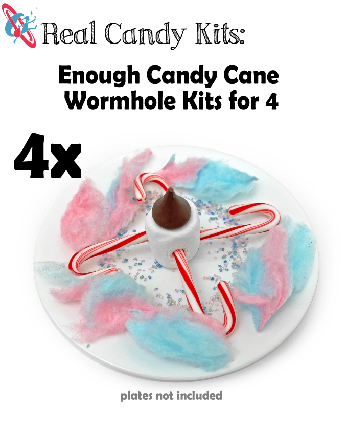 Then build your own Candy Cane Wormhole using easy instructions on the last page of the book (also below). This child-friendly food craft makes a delicious treat, needs no baking, and helps Santa deliver gifts to you in a squirrelly new way! You can buy all the ingredients at your local grocery store, or save yourself time with our prepackaged kits.